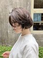 前回かけたパーマを生かしたアンニュイボブスタイル。ステップボーンカットでカットすることにより、空気感が生まれ揺らぐ髪に導きます。ヘアカラーは赤みを消したブルージュカラーです。