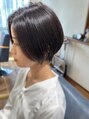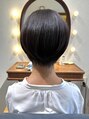 すっきりショートボブに一見地毛風ですがダークカラーで凛としたイメージに。後頭部の丸みとえり足の締まりがキレイなショートボブのバランスです。短めスタイルもぜひお任せください。