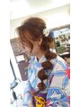 (箱崎/ダブルカラー/ハイトーン/ケアブリーチ/インナーカラー/縮毛矯正/韓国/グレージュ/ロング)ヘアアレンジ 浴衣 着付け着物 アップスタイル 和装