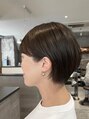 暗めカラー/切りっぱなしボブ/美髪/ベリーショート/30代