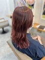ハイライトをブリーチで入れて赤紫系でカラーしました。