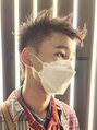 パンクなイメージのショートヘアはボックス状にカットしフロント、サイドに長短をつけて動きを出しています!
