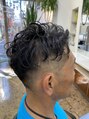 高めのツーブロックにくせ毛風の楽ちんパーマ