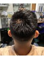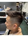 アップバングにして、まわりは、ノーマルフェードを入れました。毛流れに沿ってカットをしているため、スタイリングは、ジェルをつけるだけでOK!