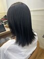 カラーはブルーブラックとダークベージュのミックスで地毛風カラーに。カットは鎖骨の長さに合わせた切りっぱなしボブ。外はね仕上げも楽にセットできるカットで仕上げました。
