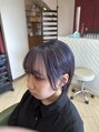 ブリーチすると根本4cmがイエローオレンジで中間毛先がビビットグリーンという難問に根本を濃い青紫、毛先を少し薄めの赤紫にて何となく繋げました。とても喜んで頂きました。