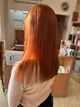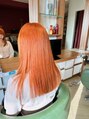 ブリーチからのイエローオレンジのブリーチオンカラー、ピンクに飽きたら、この色は新鮮ですね!