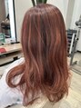 前回ブリーチハイライトで明るさをだしたカラーをいかしました!今回は、カシスカラーをのせてます。赤味の中にハイライトの柔らかさがでていて動きのある仕上がりにしてみました!