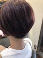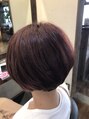 襟足はすっきりと刈り上げてタイトに。可愛いショートボブなのでピンク系のカラーより可愛さを強調させました。(写真だと色がとんでます)誰にでも合わせやすい王道ショートボブです。