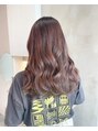 チョコレートブラウンカラー、レイヤーカットら髪質改善コアミートリートメントです
