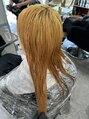 2ブリーチです。来店時のbeforeが初カラーですが毎日の高熱アイロンで中間毛先に熱ダメージあります。1ブリーチ後が真ん中の画像になります。中間毛先がオレンジなのが分かると思います。そこからホイルでセパレートして抜いて仕上がりがホワイトピンク◎