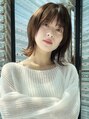 カジュアルでフェミニンなくびれミディアムです。シルキーベージュで透明感を演出し、首周りを絞ることでフォルムを骨格を綺麗に見せます。ポイントは顔まわりにレイヤーを入れる事!揺れる髪が顔にかかる事で小顔効果が期待できます。