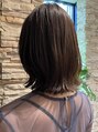 肩に沿う外ハネミディアムに顔周りのたっぷり入ったレイヤーで、旬なスタイルに仕上げてます。またシースルーバングは幼くなりすぎず、甘さをプラスするのでこのヘアスタイルに相性がいいスタイルとなります。