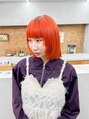 オレンジカラー ブリーチカラー ボブ 内巻き 担当熊倉