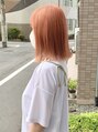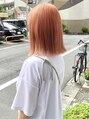 - 切りっぱなしボブに ハイトーンの淡いアプリコットを入れて綺麗なオレンジベージュに仕上げました♪