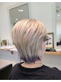 ホワイミルクティーに、サイドとネープにブルーとパープルで変化をつけたハンサムウルフ。ブリーチは2回必要になります。施術履歴によりできない場合もあります。