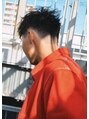 ウェイト高めのショート。全体に無造作なスパイラルを施してフロント中央に集めるような形でスタイリングします。