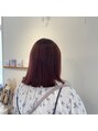 ブリーチなしのチェリーレッド。ベースの明るさは8レベル以上必要です。カットラインは重めにぱつっとモードっぽく。