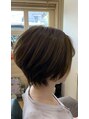 トップふんわりのショートスタイルです!スタイリングもしやすく、バームがオススメです♪カラーは、マット(グリーン)系で、柔らかい仕上がりにしました。赤みが気になる方は、是非お試しください!