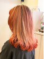 韓国オレンジピンクカラーブリーチなしレイヤーカット