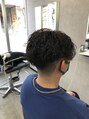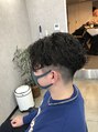 ツーブロック刈り上げ高めの前下がりセンターパートに縦落ちツイストスパイラルパーマをかけました◎セット簡単に済ませたい方今までヘアスタイルで満足した事がない方一度ご相談下さい♪必ずカッコよくさせていただきます☆