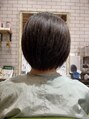 ヘアドネーションにも協力いただき、短くスッキリとしたいという事で【くびれショート】に。髪質や骨格など考慮しながら、今回はくびれの位置をやや低めに設定。シルエットが綺麗に見えるように丸みも出るようにして、カラーは柔らかなブラウンベージュに。