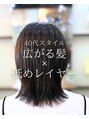 丸みのあるショートです。襟足にくせがありますが、扱いやすく、おさまりのいい長さにカットしました。よりお首が長くすっきりと見えます。