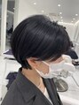 【お客様の骨格、癖に合わせてカットしています!】まとまりの良いショートスタイル!ひし形シルエットをイメージして作ることでどこから見ても綺麗な丸みのあるスタイルに。暗髪でも重たい印象にならないように質感にもこだわり、透け感も出しています。