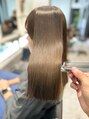 切りっぱなしのセミロンググレージュ/ミルクティカラー/ミルクティベージュ/ハイトーン/ラベンダーベージュ/アッシュカラー/切りっぱなしボブ/ロングヘア/オージュア/オージュアトリートメント/髪質改善/aujua