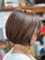 ロングからのイメージチェンジ。敏感肌専用プレミアムカラー+ウル艶TR+予防美容+カットカラーはリタッチですが綺麗な色をキープしています、それだけリアルのカラーシステムは髪に優しく、頭皮にも優しい証拠です。