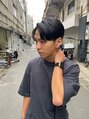 センターパートで前髪上げて後ろに流しやすくパーマあててます