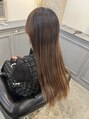 職場が厳しく6レベルほどの髪色に。ただの茶色は嫌やし、明るいのもダメということで、とことん暗くしつつくすみをたっぷり入れることによって、黒髪のような重たさをなくした透明感カラーです。1枚目が太陽光、2枚目が室内で見た写真に近いと思われます。