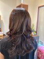 - 白髪染めリタッチ、ハイレイヤーカット。