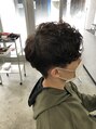 ツーブロック刈り上げのメンズアップバングショートにスパイラルパーマをかけました!!程よいカール感欲しい方にオススメです◎今までヘアスタイルで満足した事無い方一度ご相談下さい◎必ずカッコよくさせていただきます♪