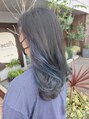 インナーカラーのみブリーチをしてグラデーションカラーにしています。紫をベースに上から重ねています。室内では、表面と馴染むくらいの明るさですが、シャンプーしていくたびに明るくなってくるので色落ちも楽しんでいただけます!