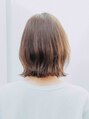 くびれを作って小顔効果抜群なミディアムスタイルてす。前髪を広めに作って、顔周りにレイヤーを入れて明るい印象にしました。くびれの位置をアゴのラインに合わせてあげることにより、丸みを出しつつ、すっきりシャープになります。