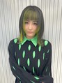 - ウルフカット 顔周りウルフ セクションカラー ライムグリーンカラー