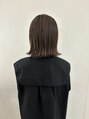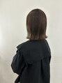 襟足ぎりぎりの切りっぱなしぱつっとロブ深みのあるベージュ系カラーを合わせたシンプルなスタイル