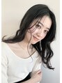 リップラインでカットした前髪をワンカールさせてセンター分けに。黒髪はゆるく巻いてほぐすと抜け感が出て軽い印象になります。