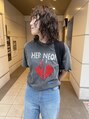 ミディアムパーマ/肩下くらいの長さに、強めカールのスパイラルパーマ!!顔まわりと表面に少しレイヤーをいれて、パーマの動き、立体感のあるスタイルです!ミディアムでハードパーマ、お洒落でオススメです!