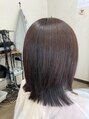 激しくすいてある状態から癖を落ちつけながら全体的にまとまるように施術しました。