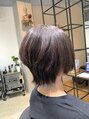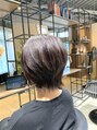 襟足を外ハネにしたショートウルフスタイル。バックに高めの段をいれ、しっかりくびれさせました♪カラーはリタッチで元々のお色に繋げさせて頂きました^ ^