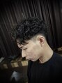 サイドバックをフェードカットで刈り上げトップのデザインは長さを残したスパイラルパーマ