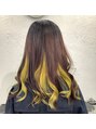 インナーブリーチ17トーンほど上げてイエローオンカラー 目をひくカラーに