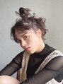 ニュアンスカールで無造作にお団子アレンジ【気に入ったスタイルは「ブックマークする」ボタンを押して、ご来店時ご提示ください】グレーベージュ,ベビーピンク,ニュアンスカラー,アッシュブラック,ミルクティーピンク,ホワイトピンク,グレージュカラー