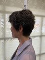 いつもありがとうございます。今回はパーマです、髪の毛の張りがあるのでサイドとネープはエンド迄巻かずに逆回転にかけてあります(サイドとネープのボリュームを出したく無い為)