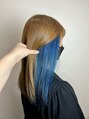 インナーカラーで垢抜けませんか?ダメージレスなケアブリーチを使用し、ブルーに仕上げました♪インナーカラーは全頭ブリーチしないのでカラー初心者さんにもオススメです!一気にお洒落になれるのでご相談ください!【インナーカラー/ブルー】