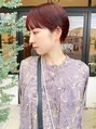 耳にかけた時に丸みのあるひし形に収まるようにカットしたマッシュショートは扱いやすくバランスの良いスタイルです。カラーはお肌が綺麗に見える赤みのあるピンクオレンジブラウン。