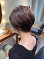 大人のショートスタイル。クセを活かしてふんわり丸く、えり足は締まるようにカット。