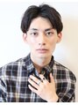 男らしく前髪をしっかり立ち上げたアップバングショートスタイルです!